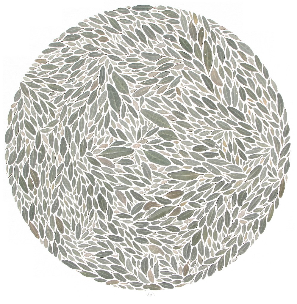 Coastal Saltbush (Atriplex cinerea) leaves, linen thread and bookbinder’s gum on canvas